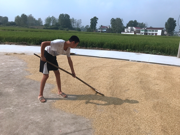 离开龚某某家,继续前往金安区施桥镇三口堰村的邵某家开展送教。劳动小能手邵某在家是爷爷奶奶的好帮手,经常帮忙干家务活,减轻爷爷奶奶的负担。这不,他又在帮爷爷晒稻子。劳动后,主教王志洋老师给邵某上了两节爱国主义教育课,通过学习了解北京、天安门、国庆节等,教育其要热爱我们的祖国。