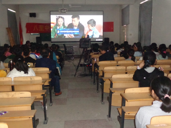 八里中学组织学生观看爱国主义影片