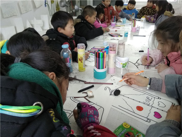 学生们随着专业课教师一起走进课堂,认真的学习老师教的绘画“温暖的毛衣”,跳着舞蹈“红领巾”,唱着歌曲“歌声与欢笑”。课堂内外充满了学生开心快乐的笑声。