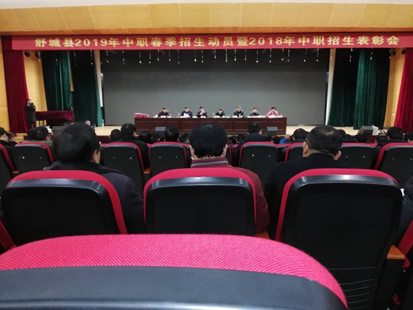 1月11日,2019年中职春季招生动员暨2018年中职招生表彰会在舒城职业技术学校召开,全县各完职中、中心校校长、初中校长参加了此次会议。会议由教育局副局长杨云飞主持。干汊河中学查斯舜校长积极参加会议,认真听会、详细记录,深刻领会会议精神,并做好下一步会议精神的传达和落实工作。