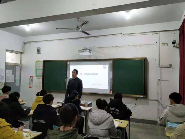 首先进行的是公开课教学展示,由高峰中心校青年教师俞家宝和汪昌祥分别执教八年级《等腰三角形的性质》和九年级《锐角的三角函数》。两位老师充分利用课内外教学资源,精心设计教学流程,将新课程教学理念融入课堂教学,课堂氛围轻松良好。山七中心校和高峰中心校的数学教师参与到此次校际交流活动中。