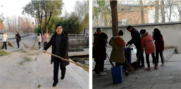 12月5日清晨,该校校园内满地树枝和树叶,各班班主任迅速组织学生打扫校园,拖树枝,扫树叶,学生们忙出满头大汗。九(1)班班主任宣兴书、六(2)班班主任杨仁采见状急忙加入行列,不让小个子学生干重活,亲自拖拽树枝,挥动扫帚,带领学生清理校园。学生们看到老师们带头劳动,就更有劲了,半个小时就将校园打扫得干干净净。