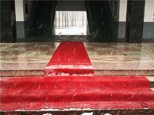 及时清除过往通道积雪。清晨六点多,学校安排在师生进出教学楼过往通道铺设防滑地毯,清理校园积雪和冰冻,确保道路安全畅通。