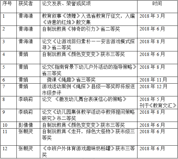 一年来,工作室的老师们在各自的岗位上勤勉学习,努力钻研,取得了一系列的成果和荣誉,列表如下: