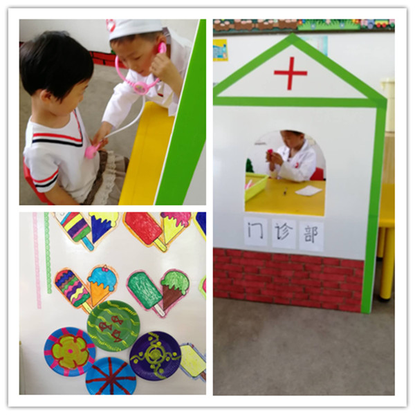 活动前,老师根据幼儿的年龄特点、兴趣及结合主题教学内容,充分利用教室空间创设了丰富多彩、形式多样的活动区,并投放相应的活动材料。活动中,老师们仔细观察、用心记录,孩子们则在自由、宽松的氛围中开心、自主地游戏。活动后,大家就活动内容进行研讨交流,阐述活动设计的亮点以及不足。