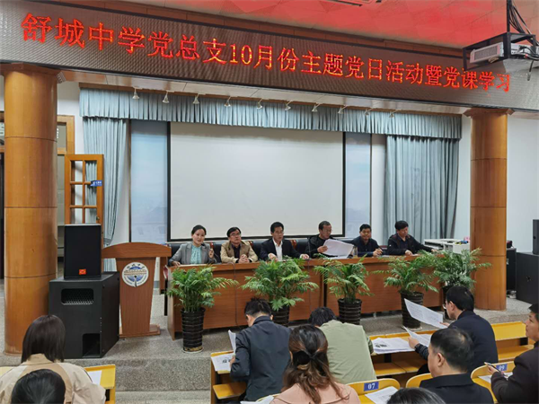 “重温历史庆国庆,担当作为感党恩”,为进一步发挥党组织战斗堡垒作用,增强凝聚力、战斗力和号召力,10月19日,舒城中学党总支在校报告厅举行了10月份主题党日暨党课学习活动,学校全体党员同志参加了活动。活动由党总支副书记陶群主持。