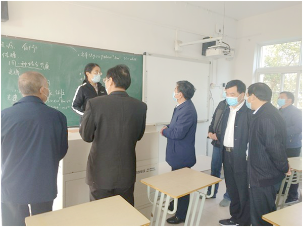 王岚一行视察了校园环境,认真察看了学校疫情防控、控辍保学、学生资助、幼儿入园等工作开展情况。详细询问控辍保学、送教上门情况,学生资助建档立卡户、以及已脱贫户资助情况。王岚一行还深入智慧课堂教室,察看设施设备运行情况,了解智慧课堂使用效果;深入食堂,察看营养餐实施情况;深入幼儿园,了解幼儿入园情况。
