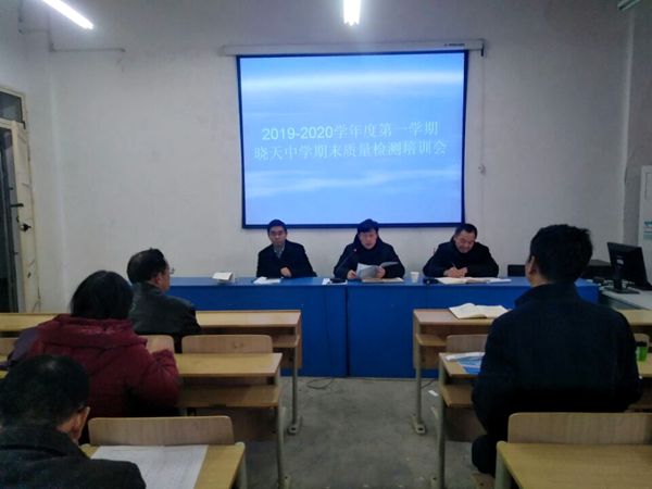 晓天中学于1月7日召开期末质量检测培训会,全体监考、阅卷、后勤教师参会。
