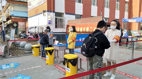 进入校门,城关中心校校长刘卫东向检查组介绍了城关中心校开展抗疫复学工作的举措,辖区内学校始终把广大师生生命安全和身心健康放在首位,坚决落实落细校园封闭管理、师生错时错峰入校入班离校等要求,确保开学复课顺利平稳。城关二小校长班勇介绍了该校复学准备情况,学校提前召开抗疫复学班主任培训会,制定了《城关二小抗疫复学应急演练方案》,开学准备各环节已经模拟演练了多遍,坚决把疫情阻挡在校门外。目前,学生正按要求分年级分时段错峰有序返校。