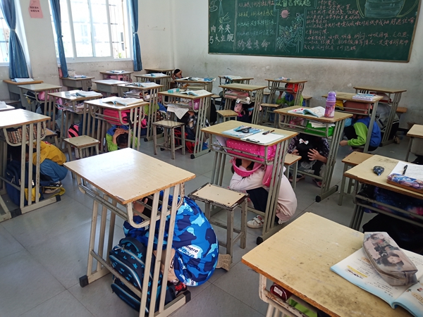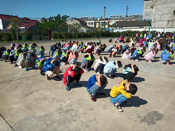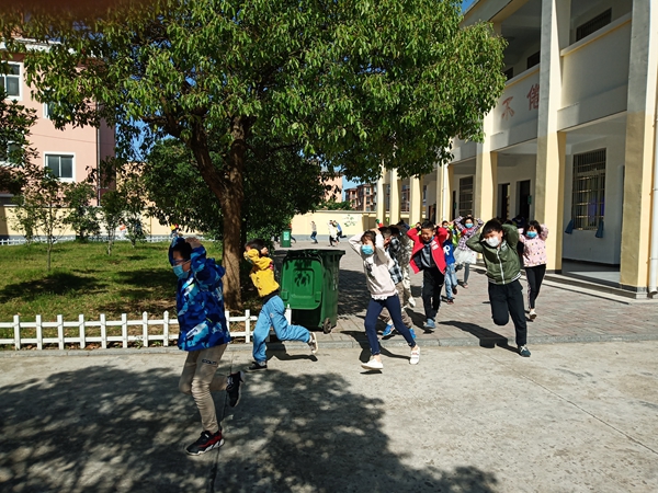 上午9时许,随着演练铃声响起,全体同学在老师的组织下,按照演练现场总指挥的指令,迅速就地进行应急避险。当现场总指挥发出“紧急避险结束,马上疏散”的指令后,大家迅速有序地从前、后门撤离教室,沿着预定好的路线迅速撤出教学楼到达操场。全校师生参加本次防震减灾疏散演练,学生动作迅速,秩序良好,做到了快速、安全撤离。