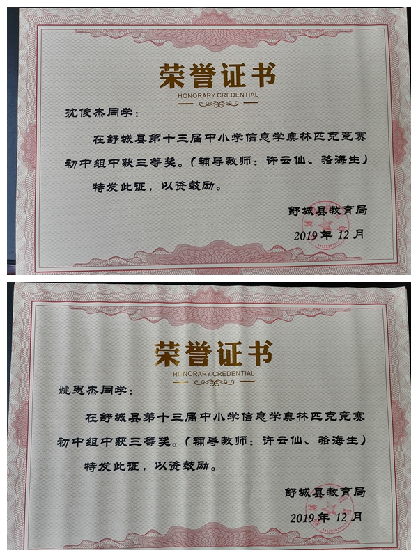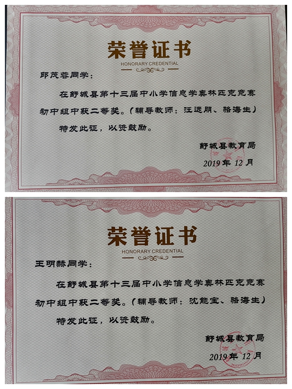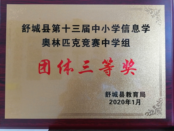 在舒城县第十三届中小学信息学奥林匹克竞赛中,干汊河中学参赛同学全部获奖,并获团体三等奖的优异成绩。