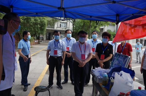 巡视组来到考点,先逐一在体温检测点测量体温,又详细询问了防疫指导站的工作人员,对该校考点的防疫工作表示肯定。