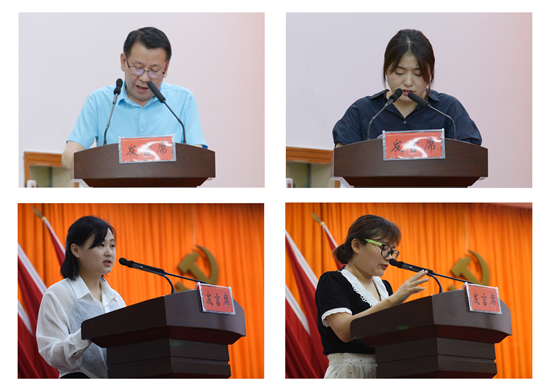 根据会议议程安排,四位援鄂医务志愿者被请上主席台,他们是县中医院内科主治医师徐尚玉、县人民医院重症监护室主管护士王欢、县人民医院重症监护室主管护士黄娟娟、县中医院内科主管护士朱娅玲。舒城职业学校的学生,身着鲜艳喜庆的礼服,向四位援鄂英雄鲜花,全场爆发出热烈的掌声,致敬英雄。这四位援鄂英雄分别作了各自奋战在武汉抗疫一线的先进事迹报告,他们直面病毒,逆行抗疫,用一腔热血践行了牢记初心使命的责任担当,弘扬了救死扶伤的崇高精神。参会同志聆听了报告,心灵受到震撼,灵魂受到洗礼。安徽国际商务职业学院心理教研室主任、国家二级心理咨询师党珊珊作了《乌卡时代女干部职工的人际素养提升》培训讲座,党珊珊老师从职业女性面对“社会面”、“家庭面”和“个体面”这三个面,谈责任和担当,谈智慧与创新,发挥自己的潜能,实现自己的梦想。