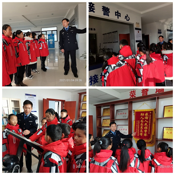 在该所警官何晓东的带领下,同学们开启了“探秘蓝色警营之旅”:在接待大厅,何警官向同学们介绍了枫桥经验;在110接警中心,同学们了解了拨打110报警的相关要求以及人民警察处警程序,并现场模拟了如何正确拨打报警求助电话;在健身房里,同学们兴趣盎然,在何警官的指导下,纷纷在健身器械上体育锻炼的乐趣;在荣誉墙前,何警官向同学们介绍了五显派出所近年来获得的各种荣誉和社会各界送来的各种锦旗;在会议室,同学们各抒己见,踊跃发言,畅谈了参观警营的所见所闻及感受,部分同学表达了长大后要当一名人民警察的愿望。最后,同学们和警官在派出所门前合影留念。