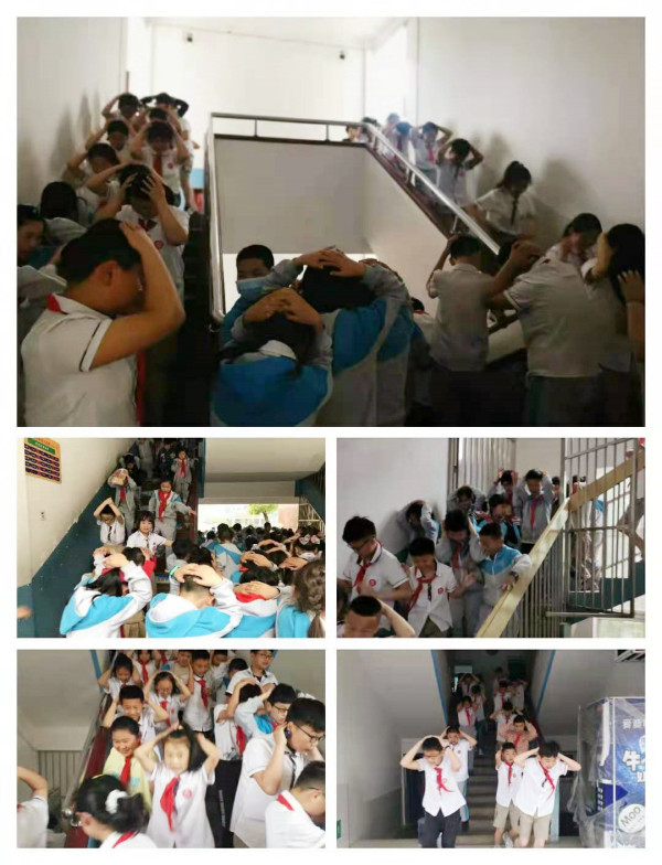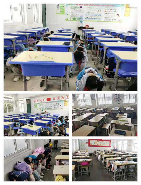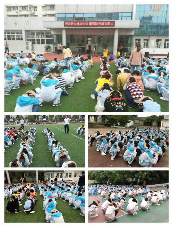 为做好本次演练活动,该校召开了专题会议,并围绕“防范化解灾害风险,筑牢安全发展基础”这一主题制定了详实的《演练方案》。根据《方案》,5月12日上午8:40—9:00为演练时间;8:40校广播发出第一次语音:紧急避险,所有学生迅速下蹲,抱头躲至课桌下,8:41广播发出第二次语音:紧急疏散逃生,所有班级学生抱头、猫着腰按既定路线有序迅速撤离至操场等安全场所;各班班长向本次演练总指挥报告人数;最后总指挥对本次演练活动进行了总结。总指挥肯定了本次活动的效果,也指出了不足:本次演练活动用时4分21秒,做到了安全、有序,但在速度方面还有待于提高,要变演练为习惯,实现任何情况下疏散撤离都能从容、快速、有序的目标。