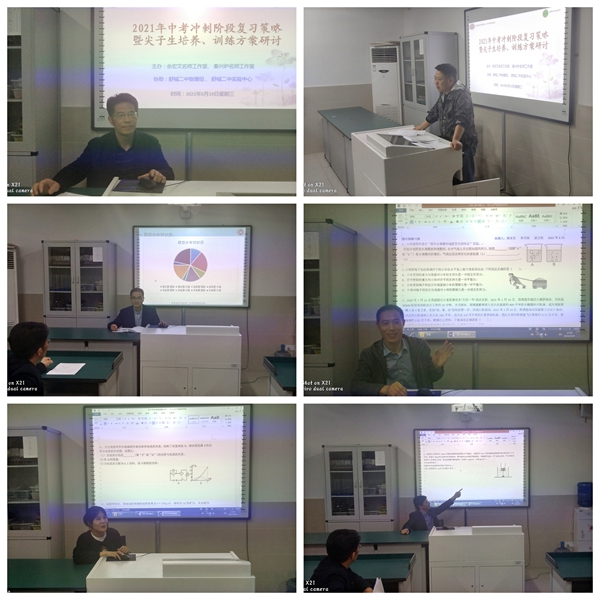 活动以“中考冲刺阶段复习方案和应对策略”为主题,围绕“中考物理考试方向预测”和“学优生后期培训指导和题型预测”开展交流研讨。秦兴炉老师就“中考冲刺阶段复习方案和应对策略”作了专题报告。两名师工作室成员武立柱、王礼兵老师分别交流了“2021年安徽中考物理考向”预测。余宏文老师主要针对学优生的后期培训指导及难题题型预测谈了自己的看法。交流中,大家准备充分,各抒己见,踊跃发言,气氛热烈。