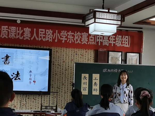5月6日至7日,来自全市各县区的18位选手齐聚一堂,分组在六安市人民路小学东校和金安路学校小学部精彩呈现课堂教学,激烈角逐比赛奖项。胡月老师执教的六年级下册《欧阳询楷书笔法(二)》,通过书法欣赏、老师示范、笔法指导等环节,完美呈现一节高效的书法教学指导课,赢得现场专家评委的认可,赢得观摩老师的一致好评,最终荣获市级二等奖。