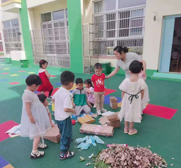 首先各班老师针对幼儿的年龄特点,通过谈话、绘画、讲故事、看电视、说儿歌等活动方式对幼儿进行环保教育活动。接着,各班来到操场进行垃圾分类实操,孩子们激情澎湃的讨论什么是可回收垃圾、什么是不可回收垃圾、什么是厨余垃圾、什么是有害垃圾,分类活动在孩子们的讨论声中圆满结束。最后,老师通过微信群、家园联系栏向家长介绍了垃圾分类重要性以及如何进行垃圾分类,使家长重视环保教育,从而鼓励、支持孩子养成垃圾分类的习惯。